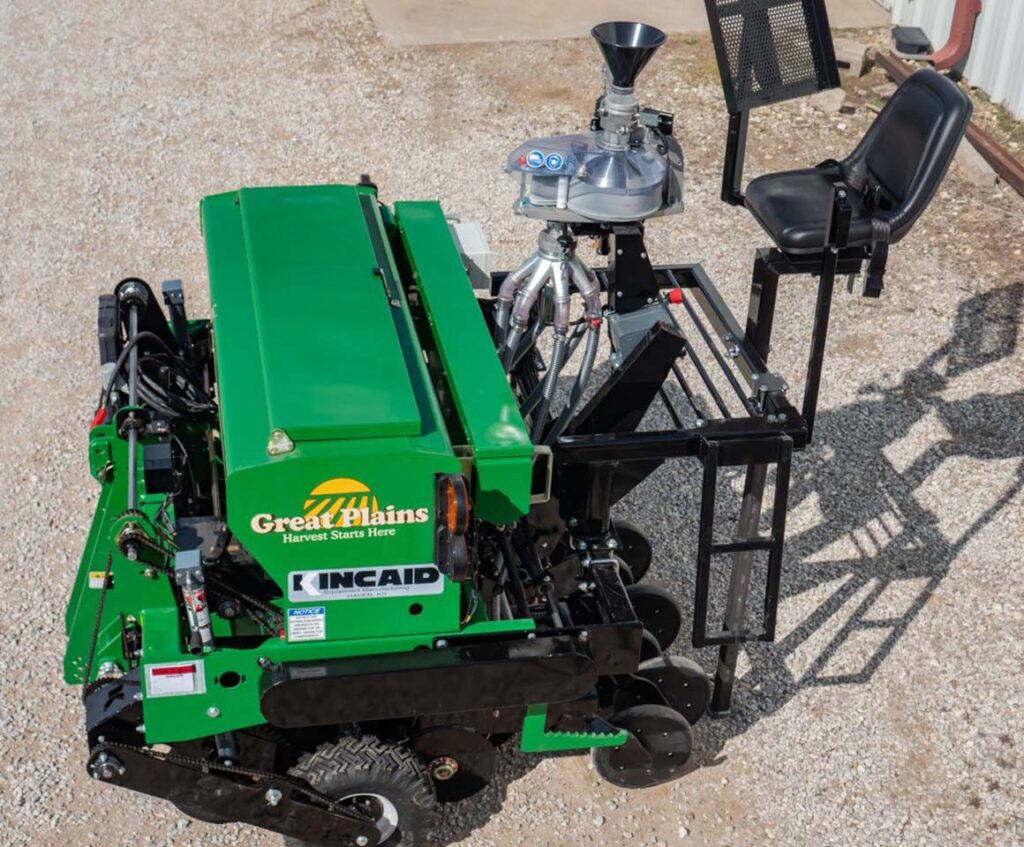 Custom adaptations of Great Plains drills to meet unique seed research requirements.